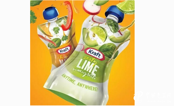 卡夫亨氏推出的Kraft Anytime! Anywher!系列的立袋包装既便携又可以重复密封,使消费者能够方便的调整沙拉酱的份量。该产品不仅填补了沙拉酱市场中零售的小袋沙拉酱和整瓶包装沙拉酱之间的空白,产品以其独特的形式和充满活力的图案在货架上吸引了人们的注意。